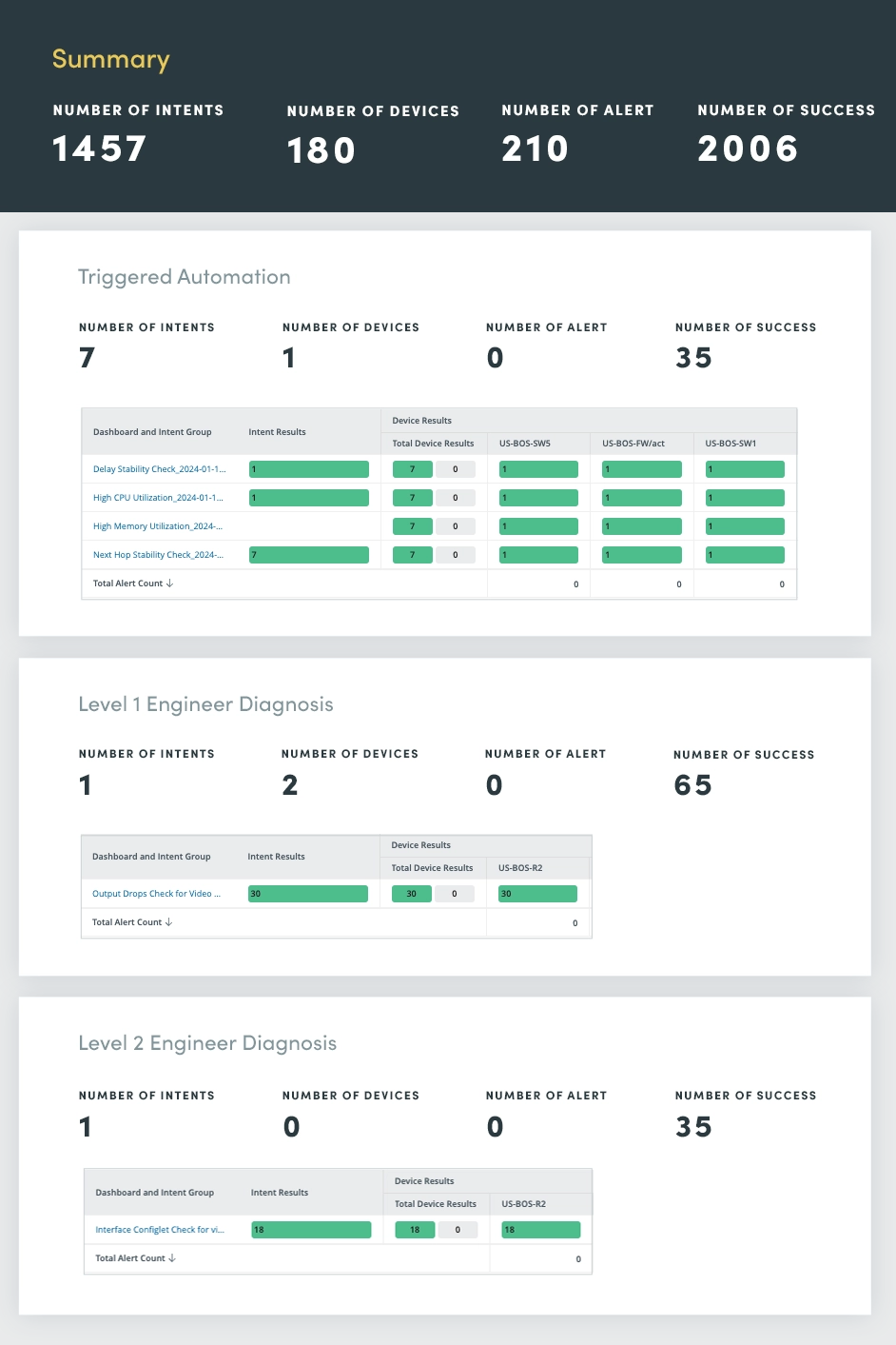 No-code network automation is transforming the traditional network assessment from an outdated audit-related task to a strategic, real-time operational tool that empowers operations teams every day. Proactively assess network performance with automated diagnostics and insights, enabling you to identify and address potential issues before they impact business operations.