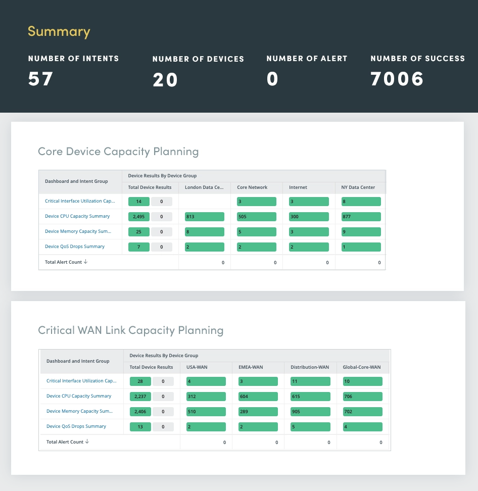 NetBrain offers a library of common enterprise network assessments as a foundation, while its no-code platform lets you customize and expand these templates to fit your unique environment. Results are easily visualized and shared through widget-based summary dashboards, empowering your team with real-time network insights.