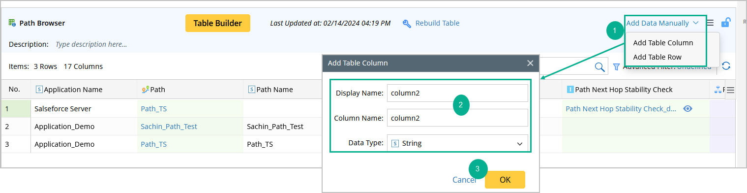 - Select the target ADT in the ADT Manger, then click Add Data Manually > Add Table Column.
