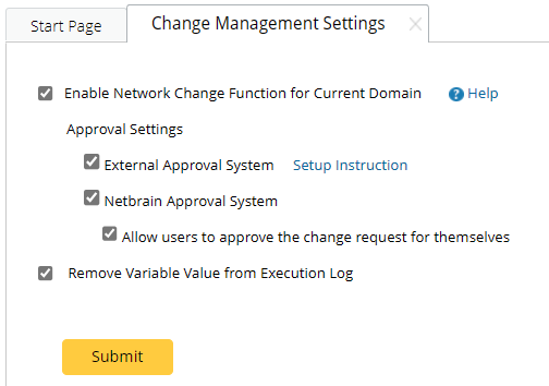 - On the Change Management Settings tab, enable the approval method you want to use.