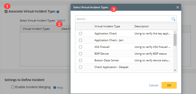 Click Select to select the virtual incident type(s).