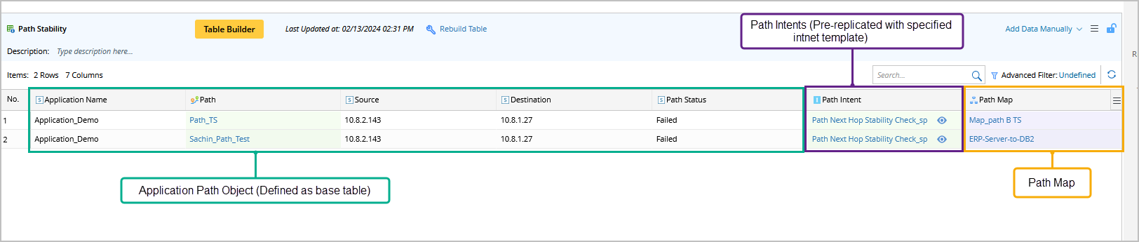 - Enrich ADT by Column Group: Dynamically add new columns to the base table by associating data from intents, probe, path intent, other resource properties.
