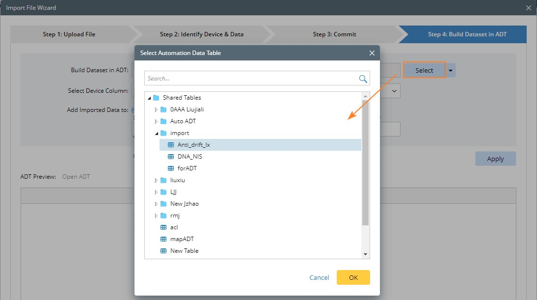 - Select Device Column: Select a device column in the ADT. And if there are imported devices that are not in this column, they will be discarded.