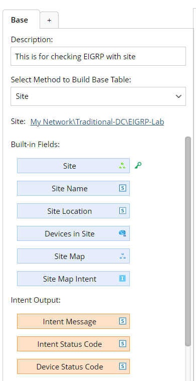 The intent output fields are created from intent details of the site map intent.
