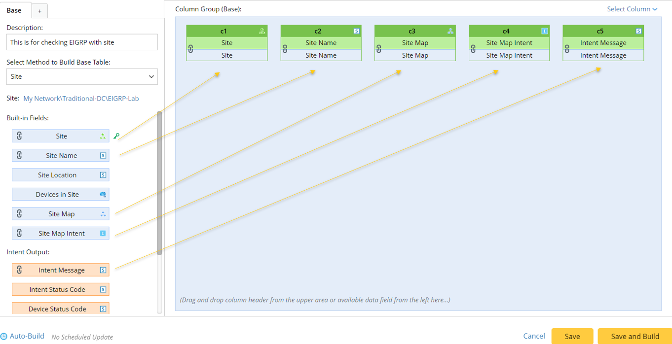 - Intent Outputs: Other intent information can be displayed in the intent output columns of the ADT, such as intent message, intent status code, intent devices, intent map, intent CLI commands, and last execution time.