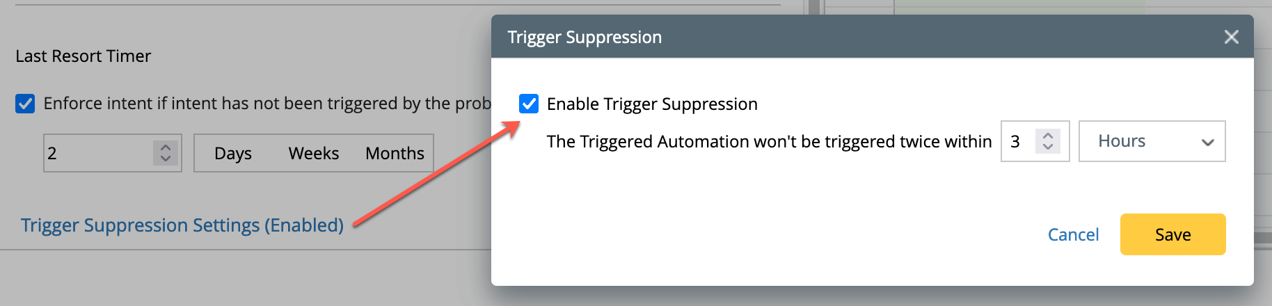 Trigger Suppression Settings: By enabling this option, triggering the automation twice in the specified time period can be avoided.