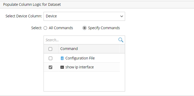 Specify Commands: Check the checkbox to select commands from the benchmark task. In the current example, we select Specify Commands > "show ip interface".