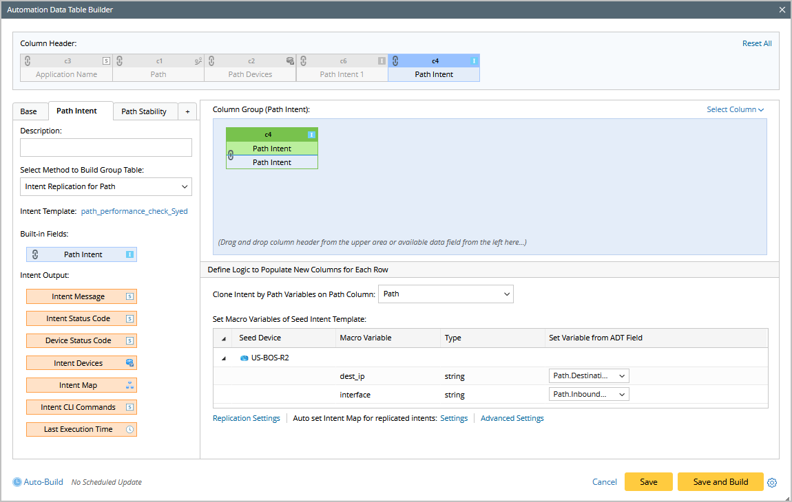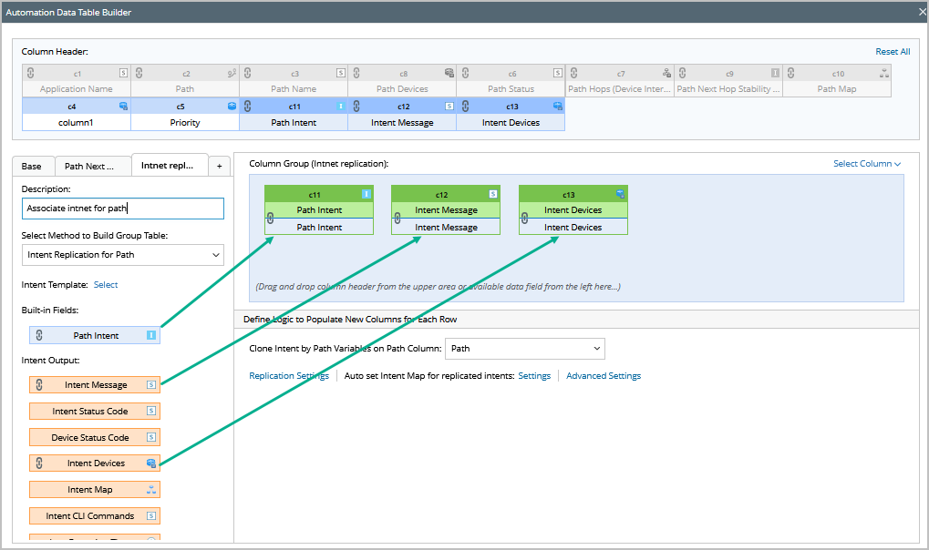 Note: For detailed steps for the configurations in ADT Builder, see Add Automation Column from Intent Replication for Path. -