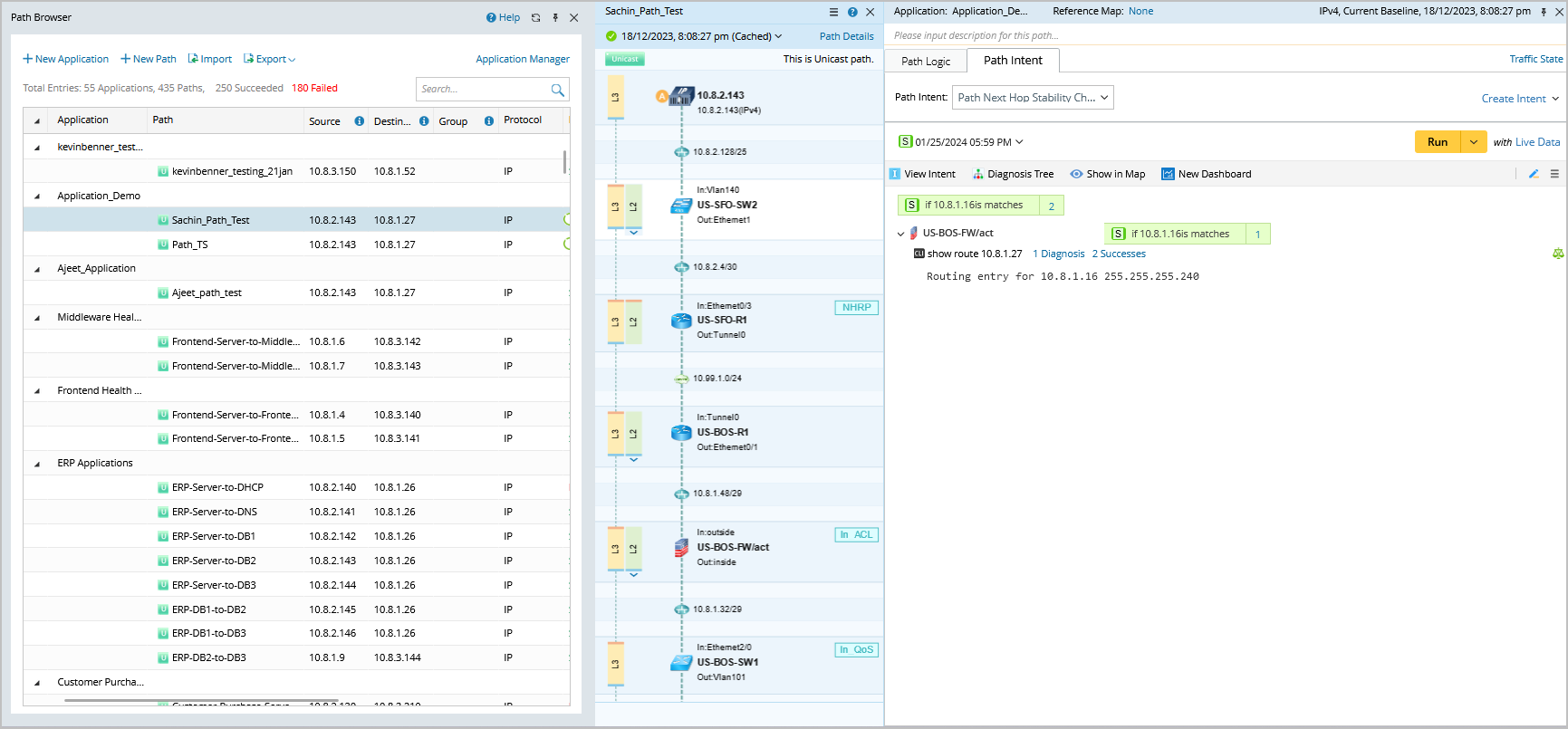 Example: Create path intents (path overall health monitor, Path Interface error check) with path intent replication service for all critical paths, and schedule to run these path intents in AAM.