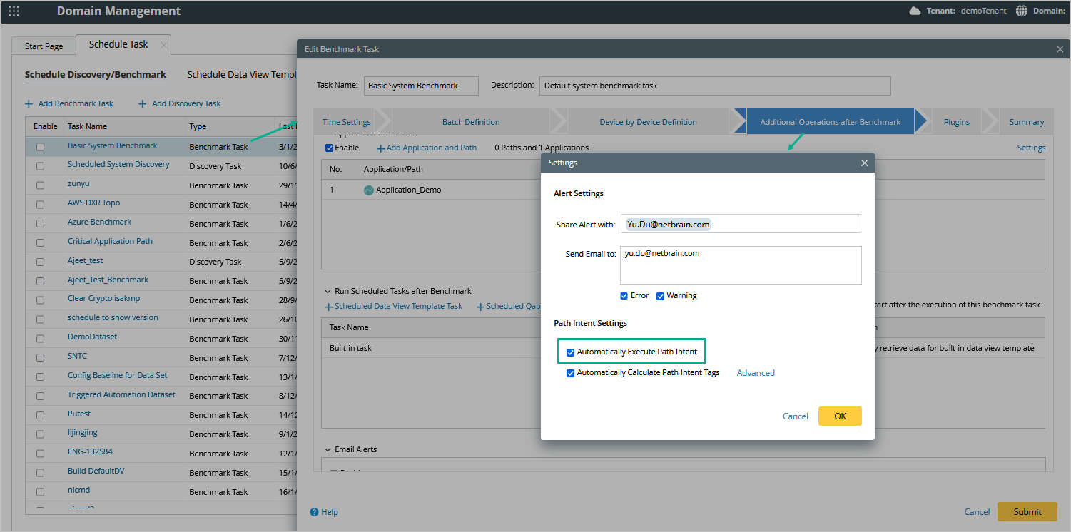 Schedule these critical paths for Application Verification in Basic Benchmark Task to ensure that the path intent will be executed for troubleshooting.