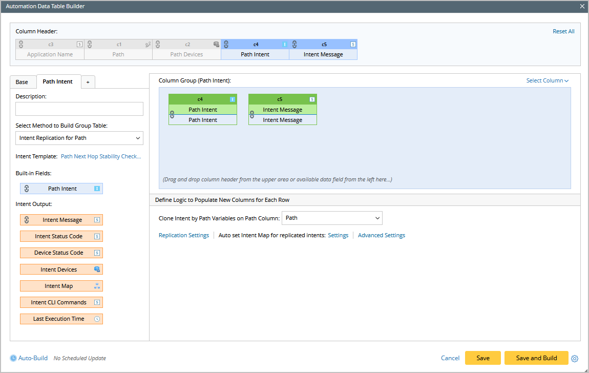 Go to Automation Data Table Builder, then create a new group and name it (for example, Intent Replication for Path).