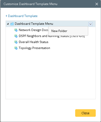 - On a map page, click Network > Dashboard > Customize from the map toolbar.
