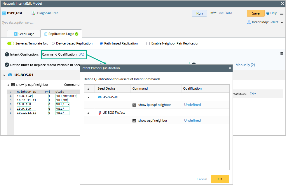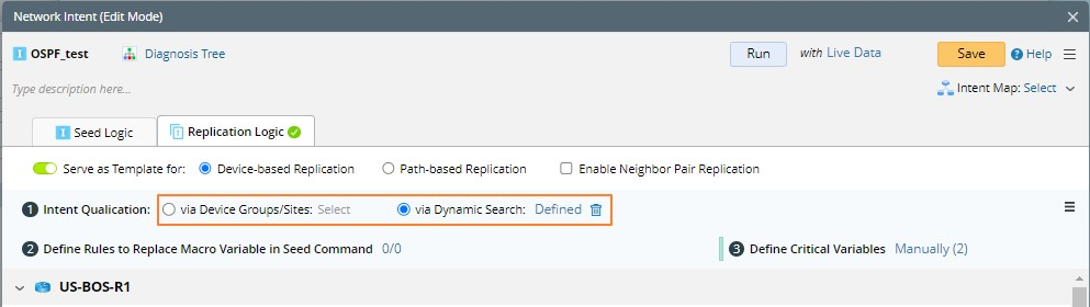 You can define the target device scope for the seed intent template to replicate intent in the Intent Qualification section.