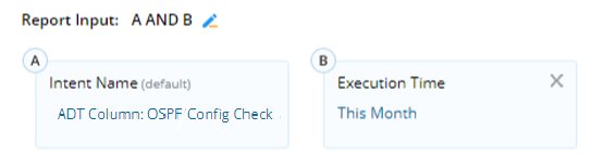 For example, if the Primary Object of the report is Intent Property, then the default input is Intent Name which allows you to select the desired Intent by name, by ADT columns, or by automation tags in ADT.
