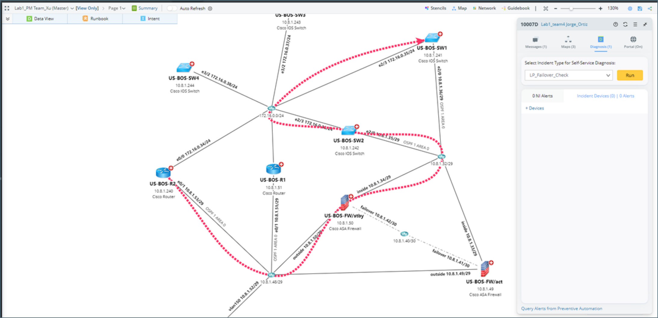 You can query all alerts for incident devices or current map devices. A query summary is displayed in the Query Alerts from Preventive Automation window from Incident Message pane. And the query summary has a link to View Preventive Automation Console.
