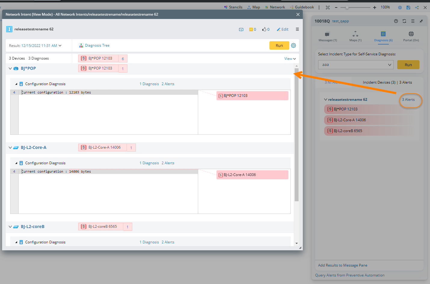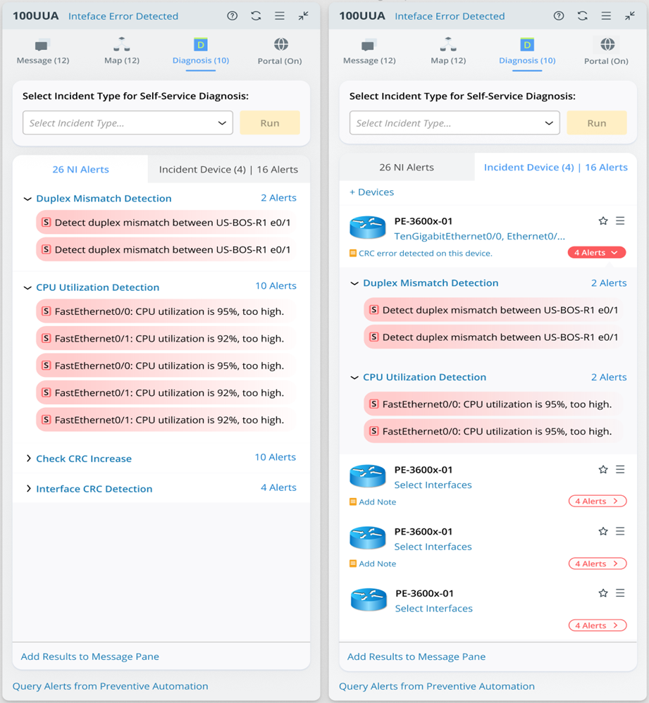 After the NI/NIC in Diagnosis is executed, the execution results will be sent to the incident message in the diagnosis pane.