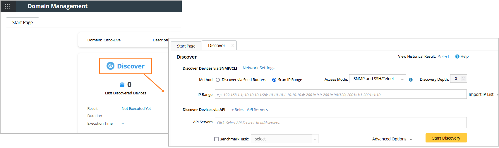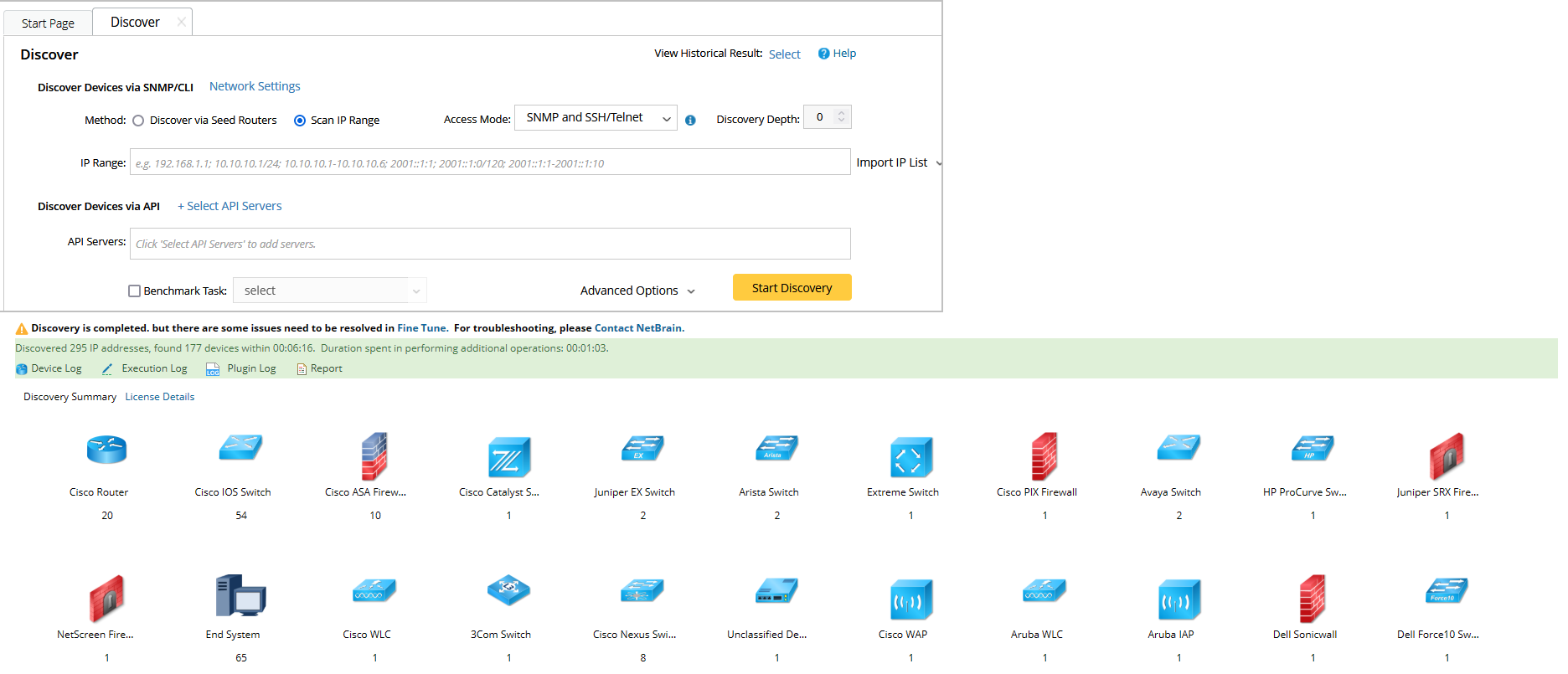 - Click Start Discovery.