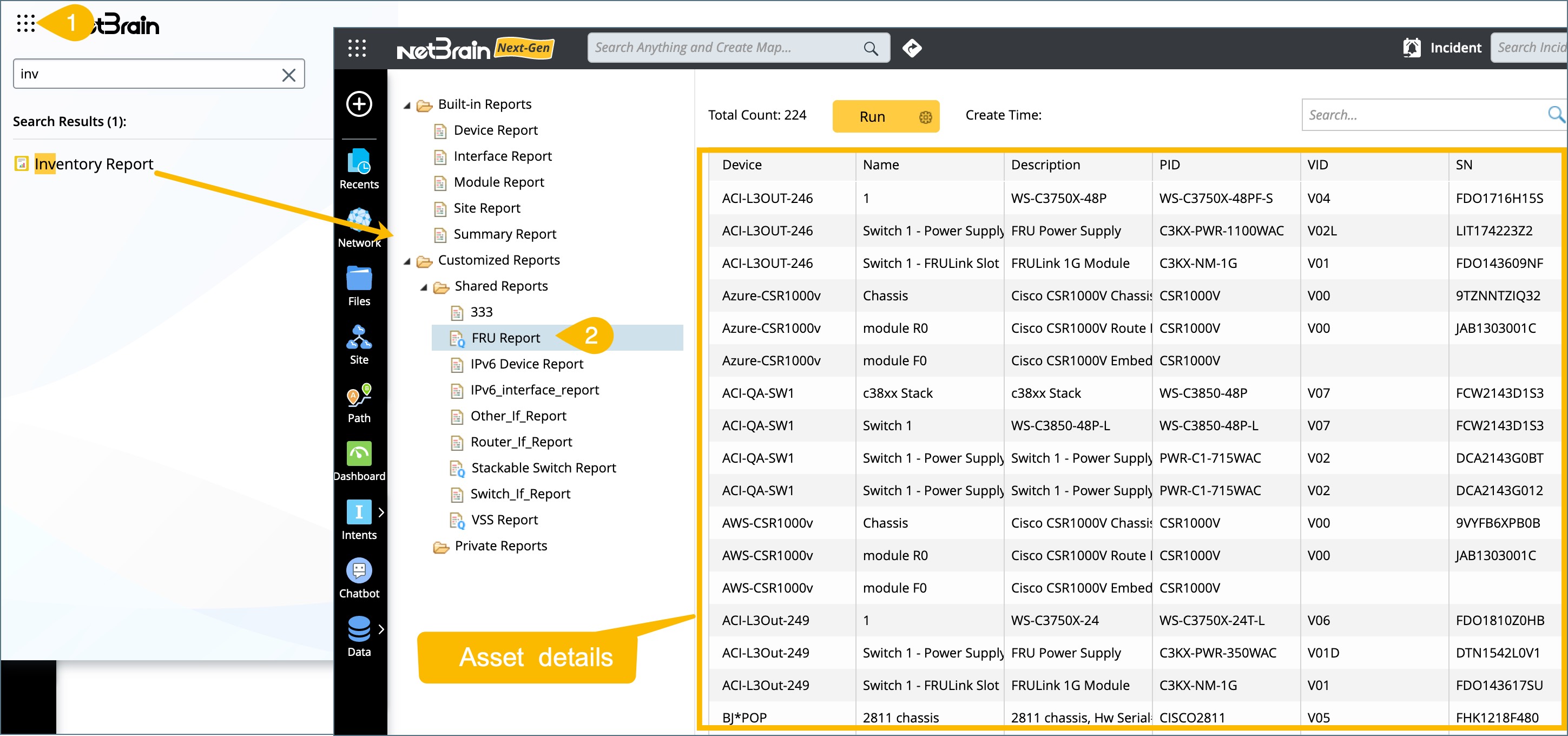 Select the target report in the left pane to browse asset details in the report. Its asset details are displayed in the right table.