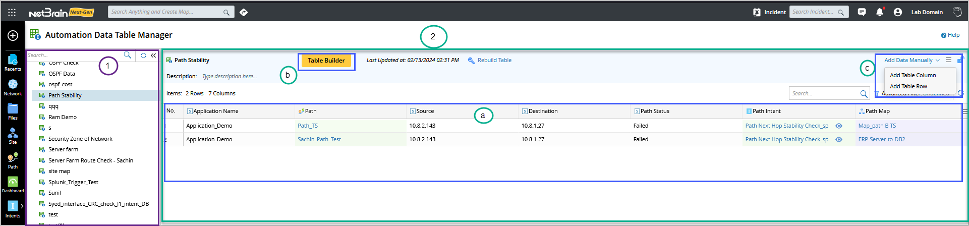 - Base Table Builder: A function for creating a basic network table. The system supports several approaches to populate automation (intent/probe/map) columns, facilitating enriching/updating the ADT contents.