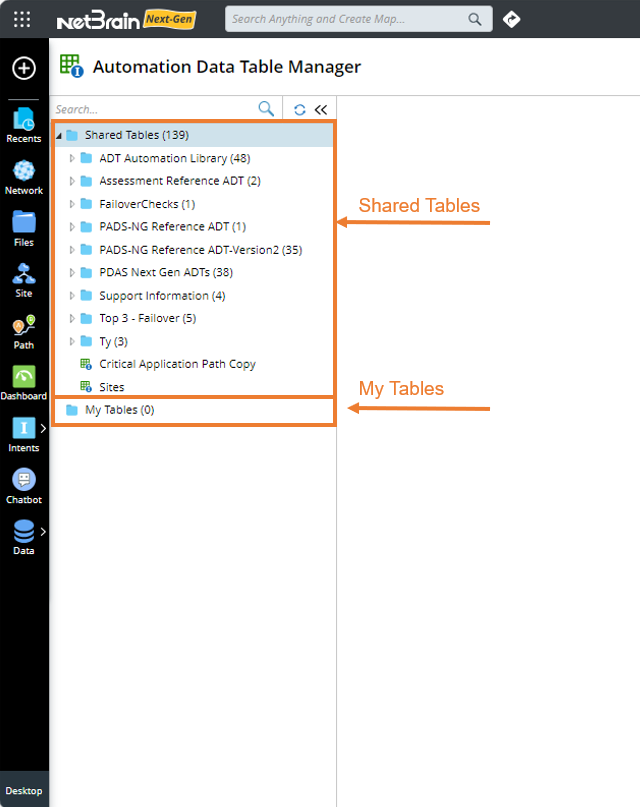 - Folder Tree: A folder tree structure to organize and manage all the Shared Tables and My Tables.
