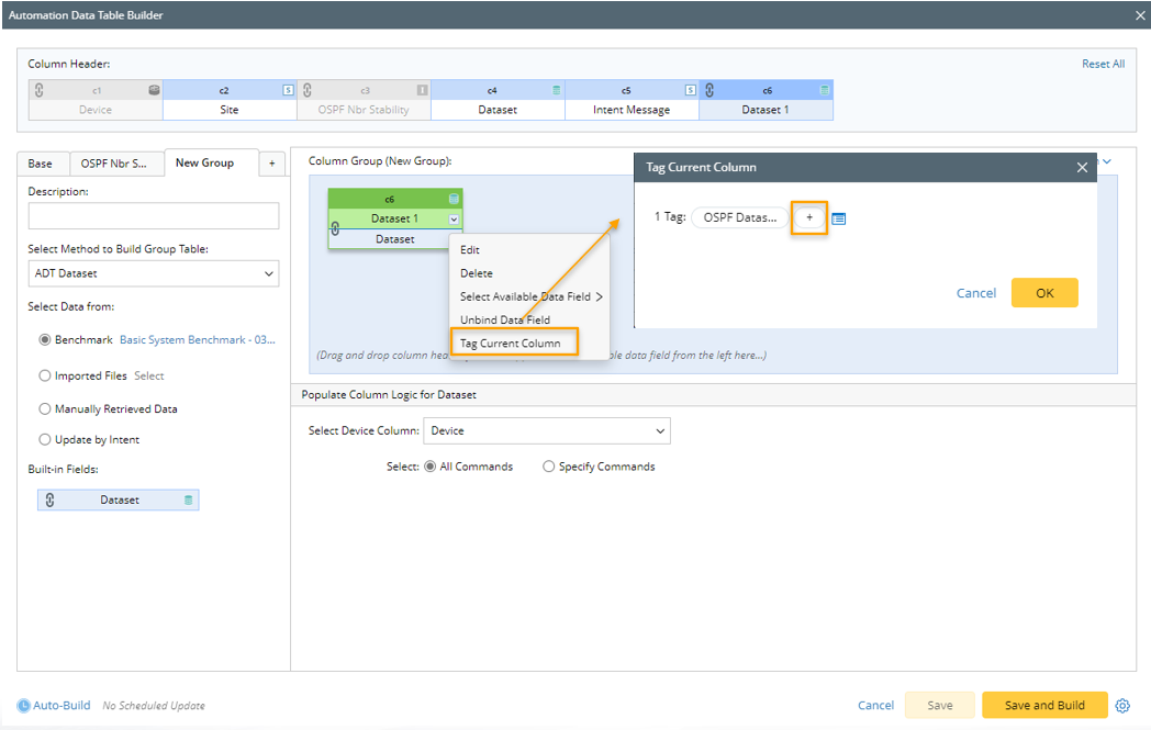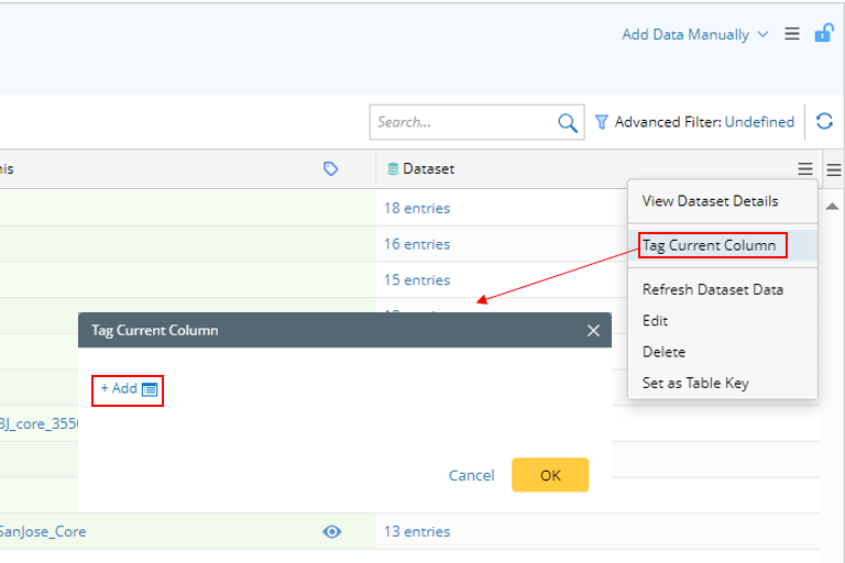 Tags can be assigned to dataset column from Automation Data Table Builder or dataset column menu of ADT in ADT Manager.