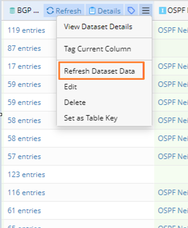 - View dataset details from the dataset column: From the drop-down menu of the dataset column, view the device and command details in this column.
