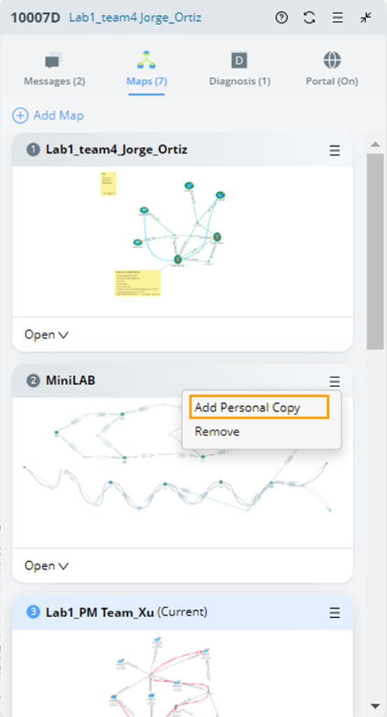 - Option 1: Select a master map first, then select a personal copy in the Map pane.