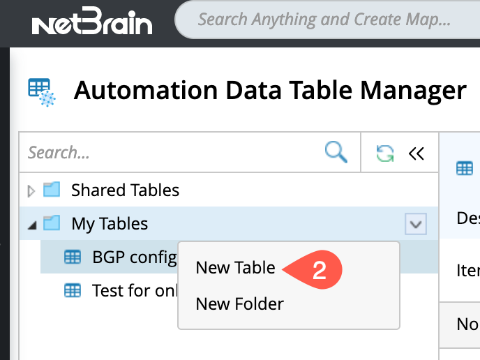 In the My Tables folder, create a new table and give it a name that describes its purpose. For instance, named it as BGP Config Check.