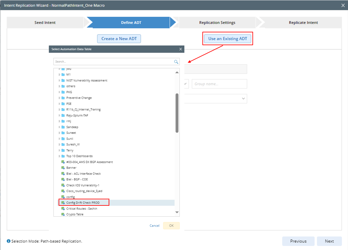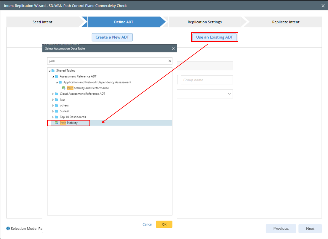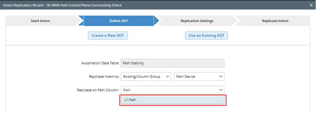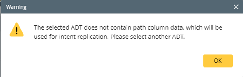 Note: When the seed intent in intended to do Path-based replication, it is required to select an existing ADT containing path column. Otherwise, an error message will appear.