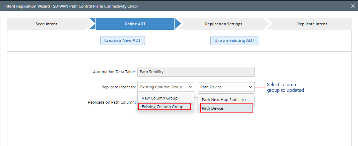 - In the Replicate Intent to area, select Existing Column Group, then select a column group (for example, "Path Device").