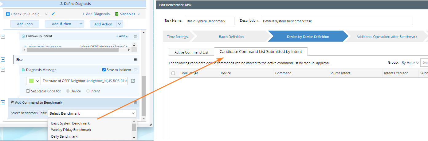 - Select a benchmark task and add the device and command pair of the current diagnosis to this benchmark task as candidate commands.