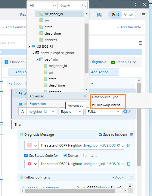 - Data Source Type: Used to determine the type of the selected data source (Live Data, Current Baseline, Intent Baseline, and ADT Dataset) in the Execution Settings when running intent.