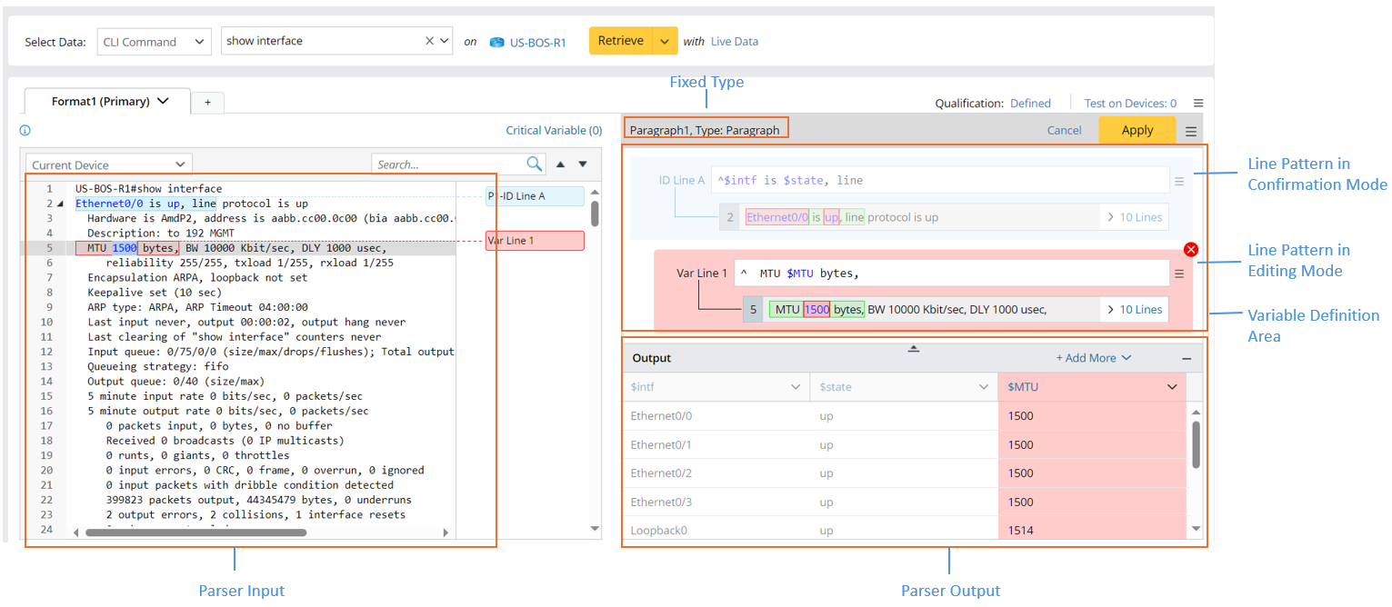 The UI components for add-on parser mode (the UI is a sample paragraph pattern) are shown below: