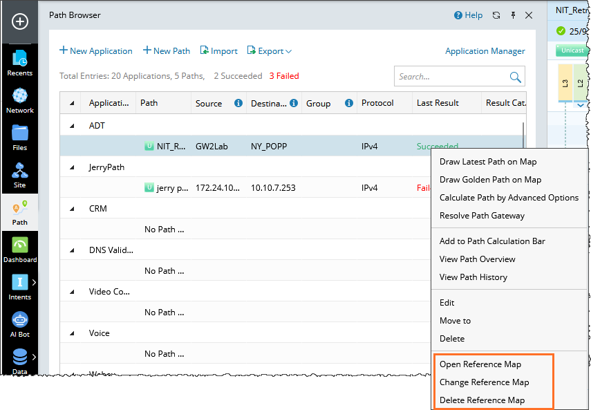 - (Optional) Right-click this path and select Create Reference Map to associate the path with related maps to better express network problems.
