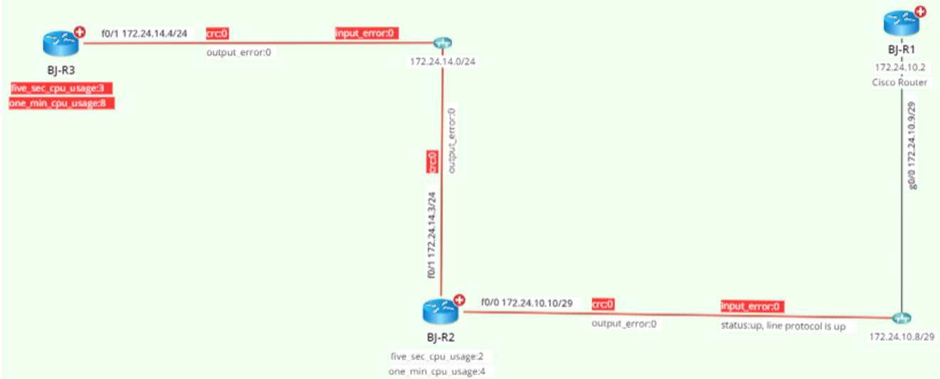 A variable can be displayed as either a device item or the interface item. In this sample, crc and collisions are interface-level variables, and you can select positions along the link. - Define alerts for interface-level variables. Click the