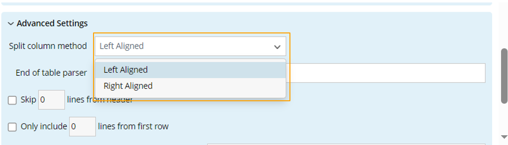 Note: The parsed result may differ depending on the alignment you select. The default option, left-aligned, usually works in most cases. If it won't work, use the right-aligned option. |