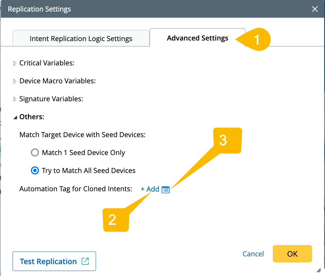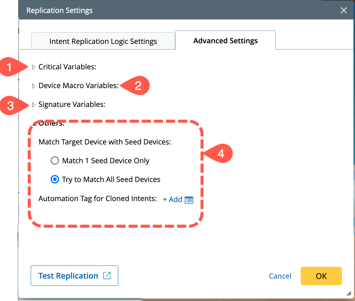 You can set the Match Target Device with Seed Devices and Automation Tag for Cloned Intents settings here.
