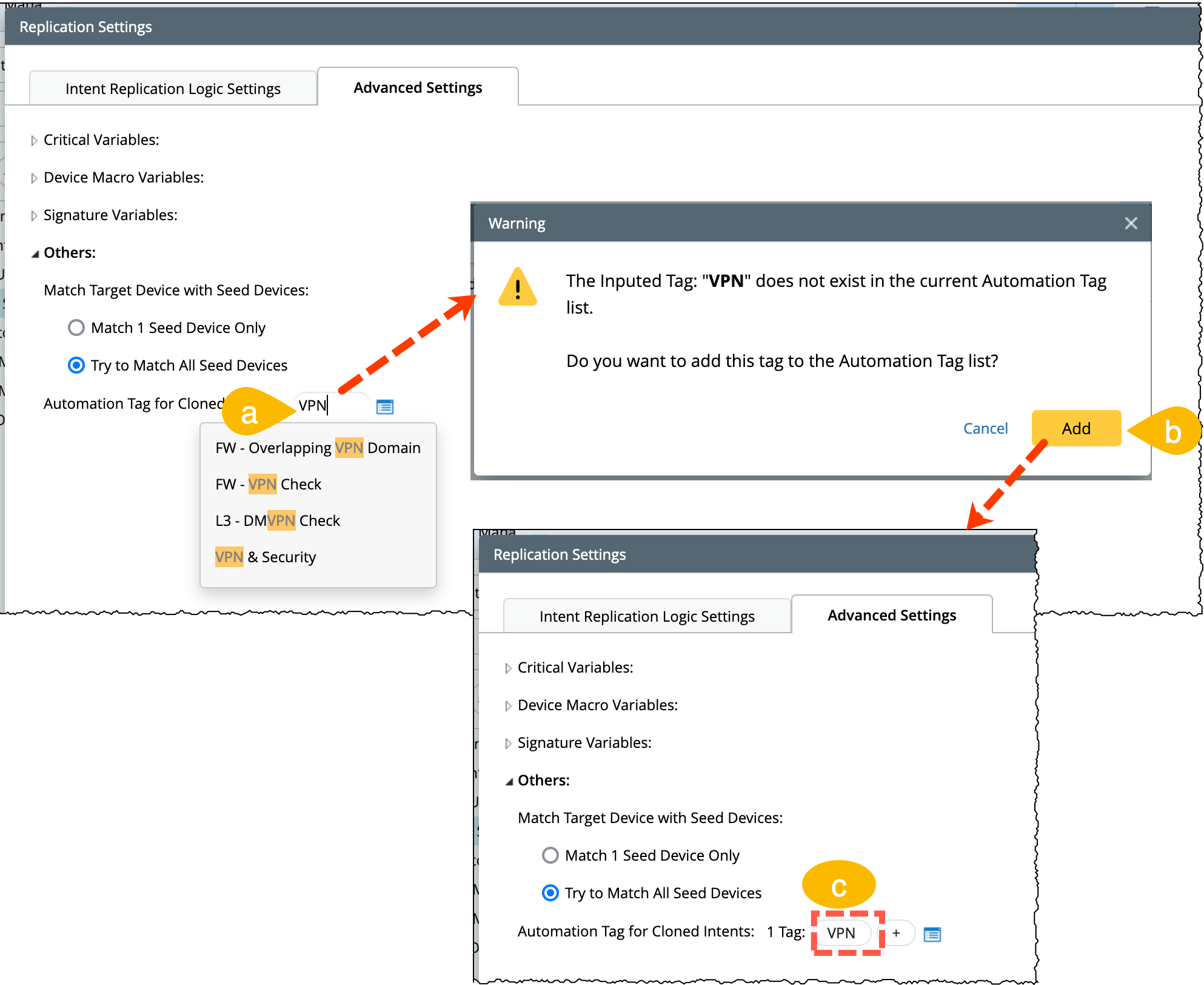 - Manually enter a tag (eg: VPN) that do not exist in the Automation Tag Manager and click Enter.