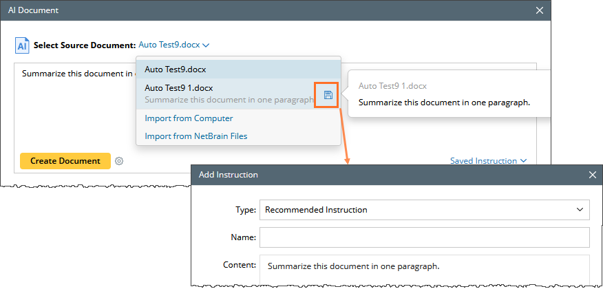 Note: To save an instruction directly from the input box, hover over it, click the Save Icon, and follow the prompts.![]() |