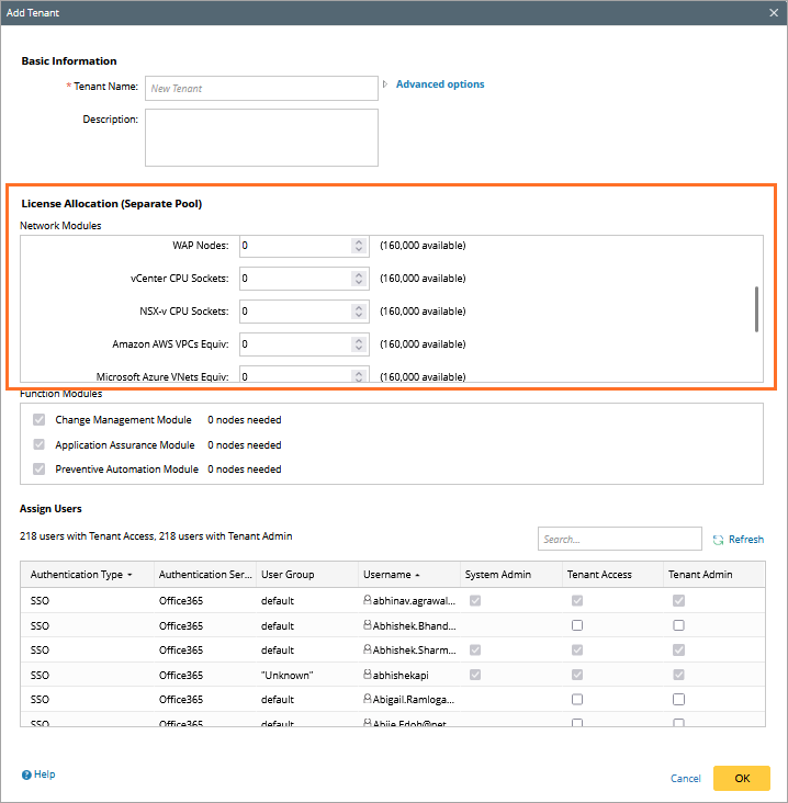 Note: Enterprise users still need to purchase the full Node License to use the corresponding Function Module. However, for MSP users, enabling/disabling the corresponding Function Module at Tenant Level is supported.