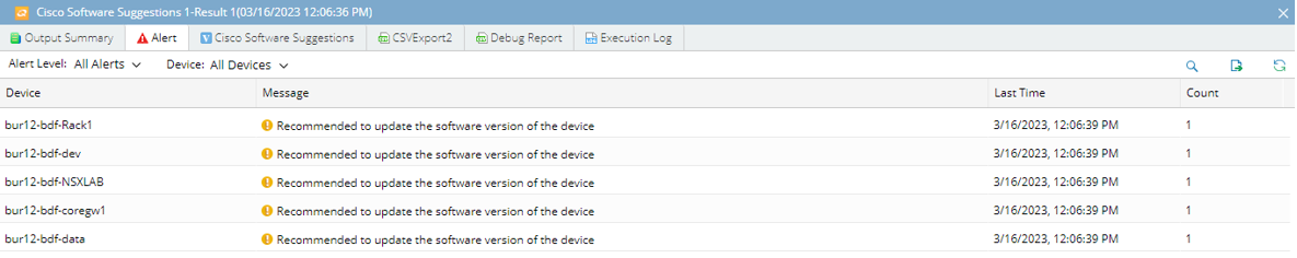 Alert to show users devices with upgrade recommendations.
