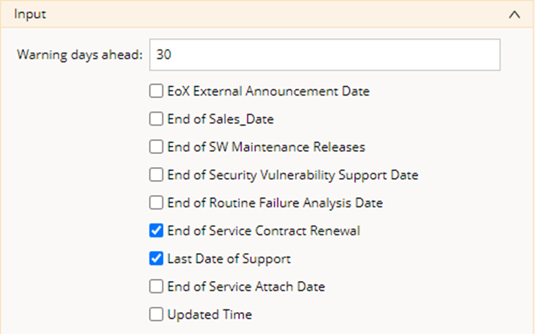 - Check the Dates on which the EoX analysis will be applied to.