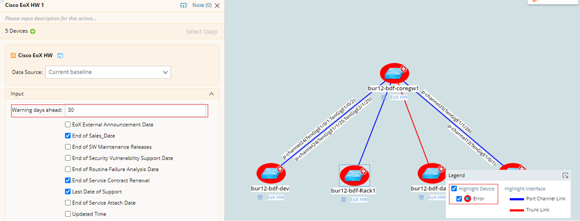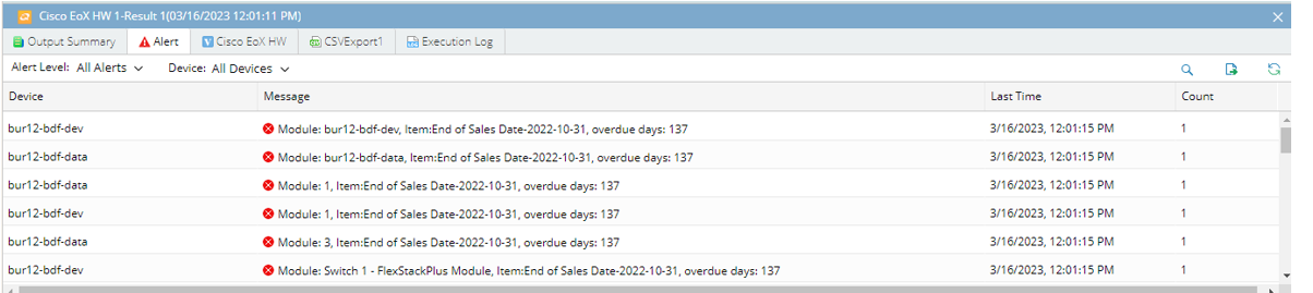 Alerts on expired devices or modules EoX date.