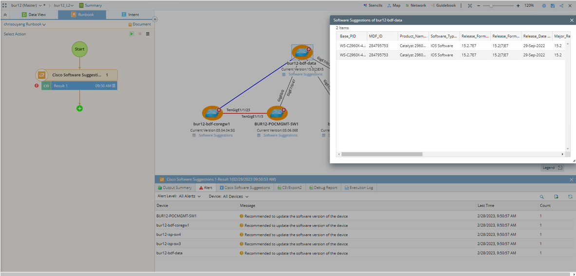 - Select Cisco Support Assessment>Cisco Software Suggestions.