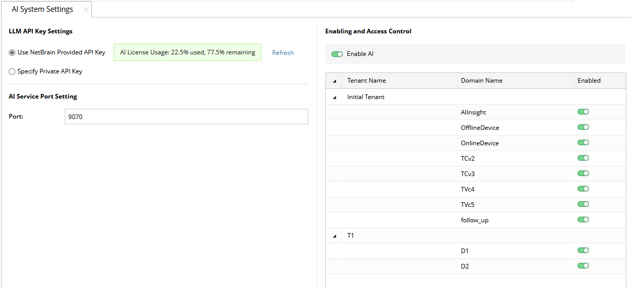 - Navigate to the AI System Settings, and click Refresh.