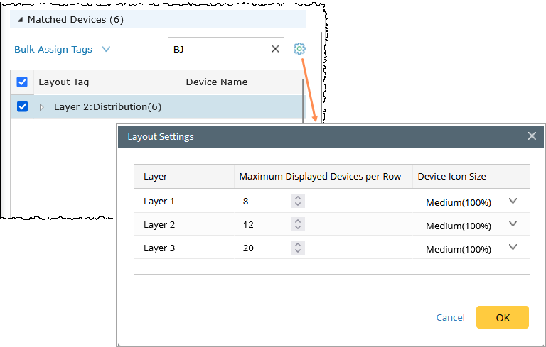 icon. - In the Layout Settings dialog box, update the device icon size or maximum number of devices per row as needed.