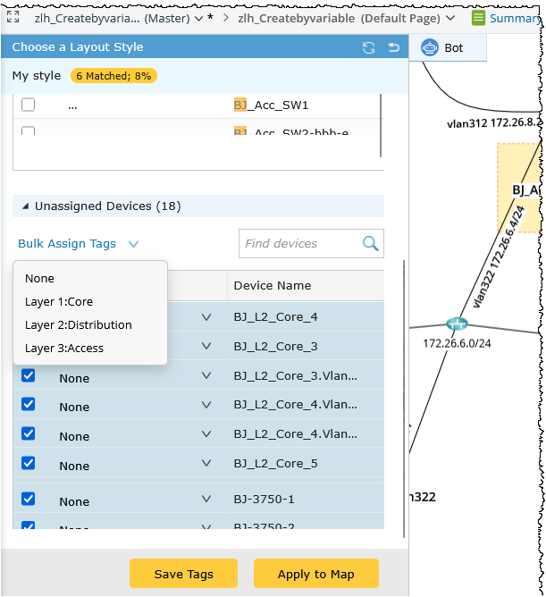 - To assign layout tags to unassigned devices: