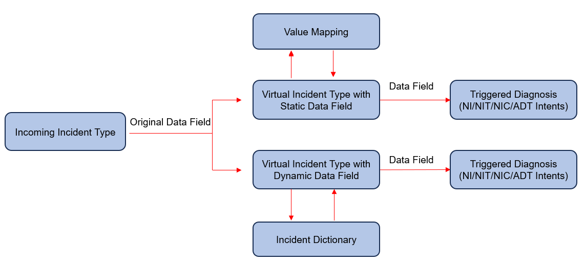 An incoming Incident Type can be associated with one or multiple virtual incident types and inherits the automations installed for these virtual incident types. This one-to-many relationship can help scale TAF.