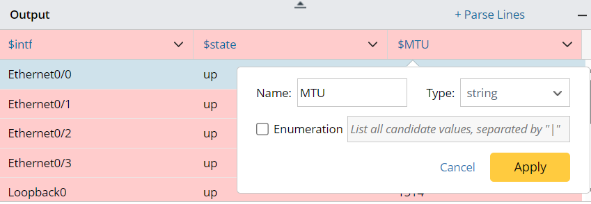 - Click the variable in the matched line area or column header (which is the variable name) in the output area, variable name and variable type can be modified, and Enumeration can be defined.