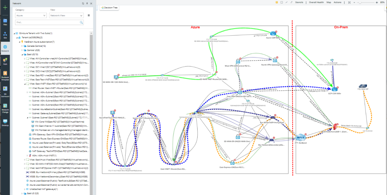 - Open the network tree and select Azure in the Category field to view the Azure resource. Select Network View in the View field.